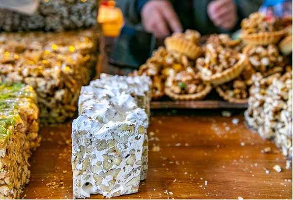 切糕在新疆,被維吾爾族人稱之為“瑪仁糖”,早在絲綢之路誕生時就已問世,它不僅歷史悠久,而且文化底蘊深厚,曾作為地方特色上過《舌尖上的我們》。