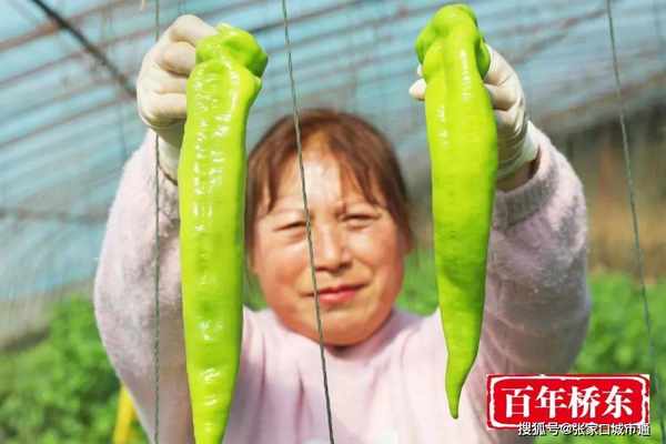 4月12日,橋東區大倉蓋鎮雙廟村村民在展示辣椒。