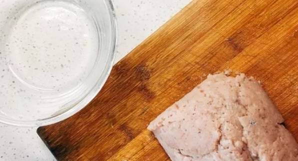 3、把刮好的魚蓉細細捏一遍,看看是否有混入的小刺。這一步非常重要,如果擔心不保險,可以借助網格細密的濾網或者輔食網來壓蓉,這樣就可以把不容易發現的小刺挑出來。