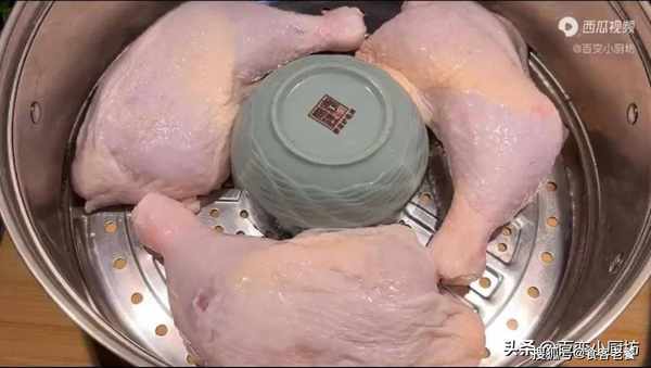 把雞腿放進鍋裡蒸一蒸,好處拿錢都難買,花25塊錢買瞭三個大雞腿回來,放進大碗裡。