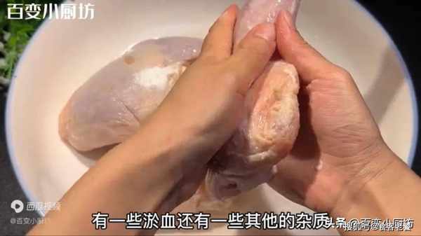 雞腿是雞身上肉最多的地方,營養非常的豐富。搓好的雞腿放回盆中,然後換清水,反復的多漂洗兩次,用面粉洗完的雞腿,我們可以看到水裡面非常的臟,把臟水倒掉,再多換幾次清水漂洗漂洗,直到盆子裡面的水變成這種清澈見底的樣子,我們的雞腿也就洗幹凈瞭。