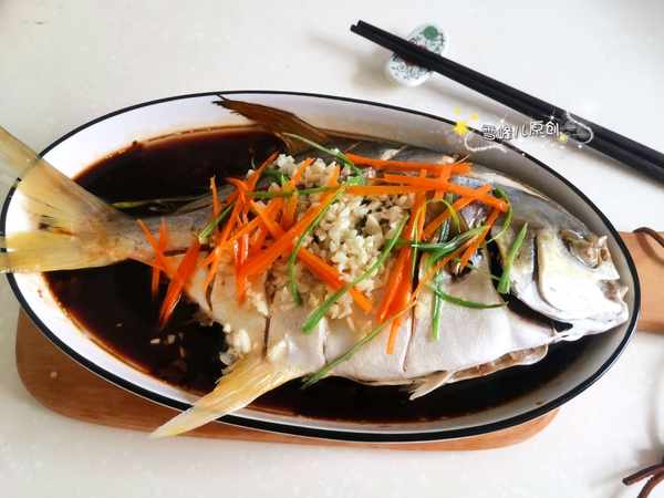 清蒸鯧魚做法:所用資料:鯧魚1條,葱絲,胡蘿蔔絲,蒜末少許,薑少許,生抽1勺,醬油幾滴,鹽少許,醋1勺,花生油適量。