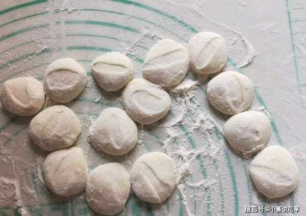 第五步:將長條切成大小一致的劑子,搟成圓形的餃子皮。