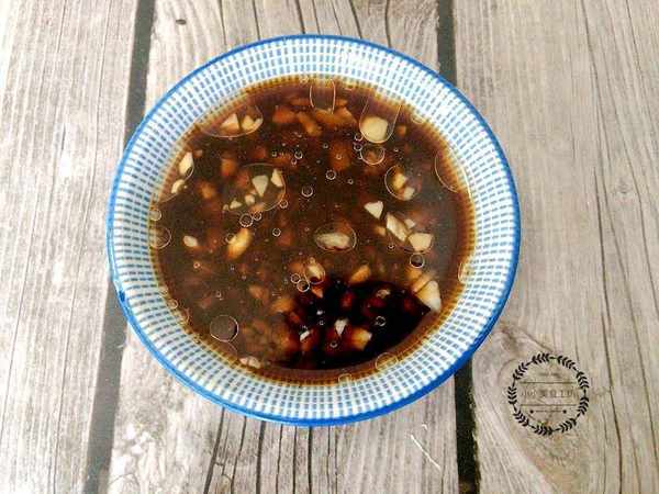 4、最後用蒜末,陳醋,生抽和香油調一個蒜醋汁來當蘸水即可。