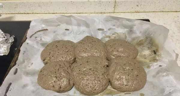 第一次發酵完成之後,將面團排氣、揉搓回原來的大小。這裡揉搓的時間也可以長一點,差不多5-8分鐘,能拉出比較薄的手套膜最好(拉不出也沒聯系啦[可愛]接著,分劑子、滾圓,依次排時尚在烘焙紙上。劑子之間的空隙不用太大,最後烤出來原本就是要連在一起的。