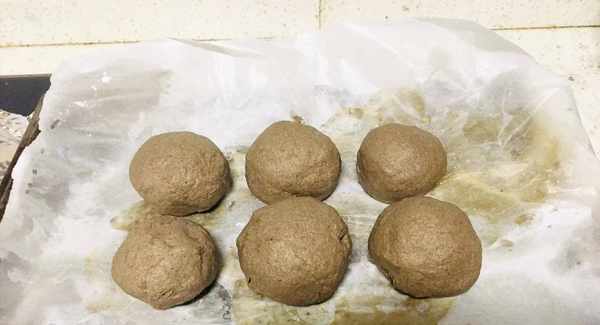 揉成一個光滑不粘手的面團,20攝氏度/68華氏度下發酵1個半小時左右。做這款面包,揉的時間可以稍微長一點,能拉出粗粗的手套膜最好,這樣後面吃起來,面包既松軟又有些嚼勁。這次用的是粗蕎麥粉,所以面團的顏色偏深。如果喜歡吃巧克力可可口味的,也可以在揉面團的時候,加點融化的巧克力或是可可粉進去。
