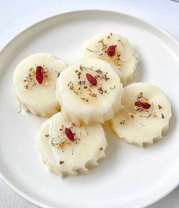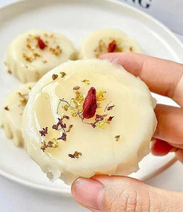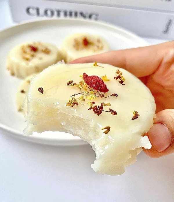 塗上蜂蜜和撒上桂花或其他幹果,可以根據個人口味自由搭配,增加米糕的口感和營養價值;