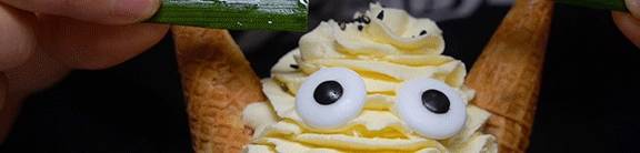 撒上零星般芝麻(其實迪哥頭發還挺多的...)放上小犄角和綠油油的眉毛,你的可愛鬼,來啦!搓瞭搓小手,準備開吃~