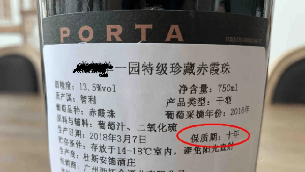 我國對於紅酒有著單獨的執行標準,因此廠傢必須標註保質期,這也是免責聲明,在這個期限內飲用口感最好。
