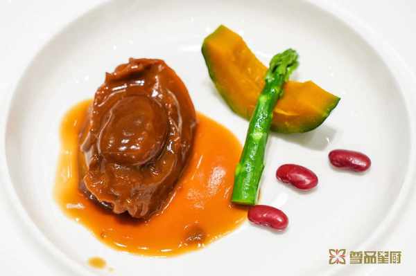 由於德華大師主理的這道美食,采用全世界最大的鮑魚供應商鮑之源出品的優質十頭吉品鮑魚,以香濃的火腿汁和鮑汁、蠔油煎香,佐以清甜的南瓜件和紅腰豆、蘆筍,鮮嫩彈牙,醇香味濃。