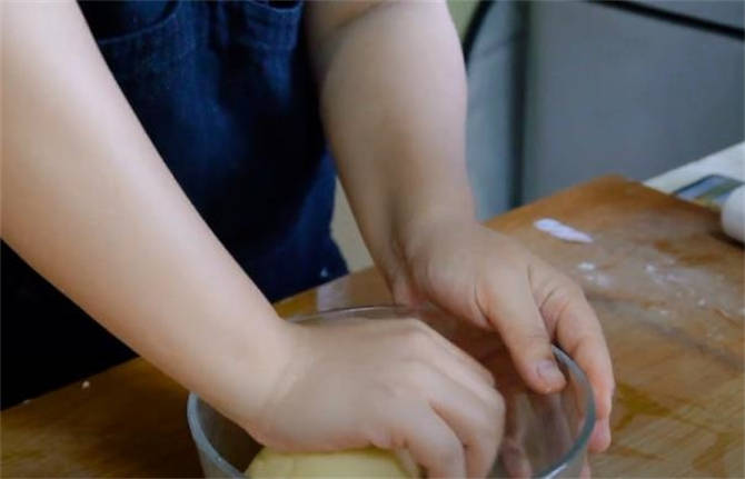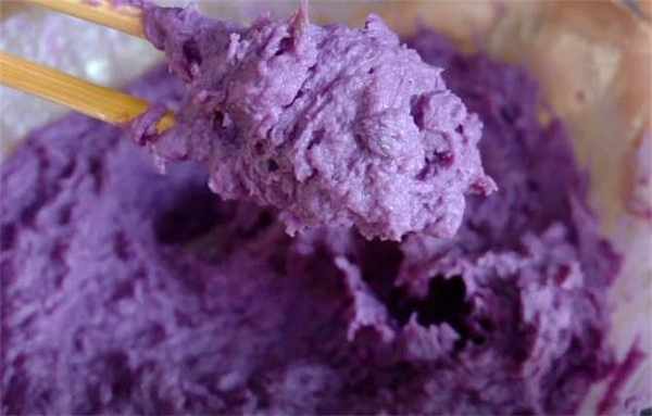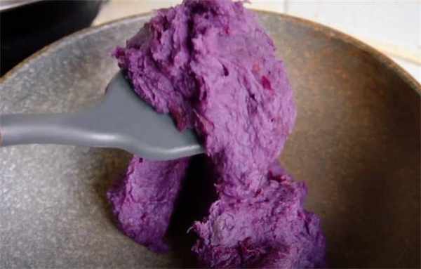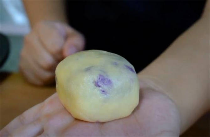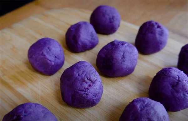 5.現在這個紫薯泥已經晾好瞭,咱們把它搓成一個個的小圓球。