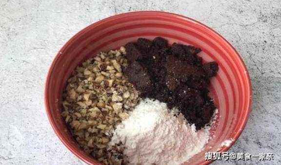 4.把準備好的幹面粉、壓碎的核桃和紅糖放到碗裡攪拌均勻,就做好瞭今天要用到的紅糖核桃餡兒。至於為什麼要加幹面粉,我會在下面的小tips裡面給大傢統一解釋。