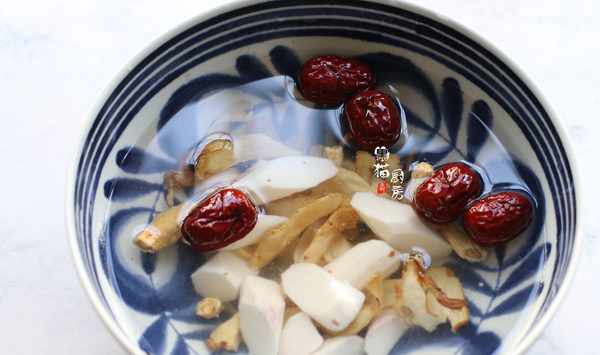 食材:淮山1段,紅棗5-6顆,玉竹20克,沙參2條,清水1升,生薑幾片,鹽少許。