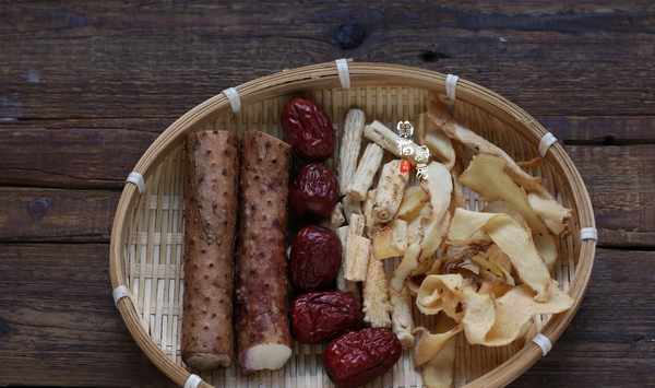 2.把山藥段削去外皮,斜刀切成塊,和紅棗、沙參、玉竹等益氣放入清水中浸泡一會。這樣也能防止山藥氧化變黑。