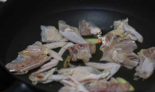 3.鷓鴣大都是在市場上都處理掉皮毛的,買回來清理掉細毛雜毛後,把鷓鴣頭和脖子去掉不要,其他部分剁成大塊。