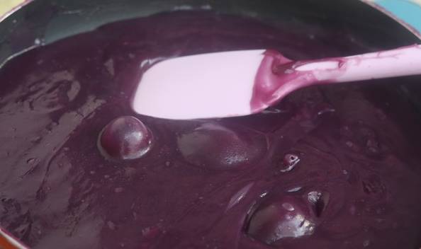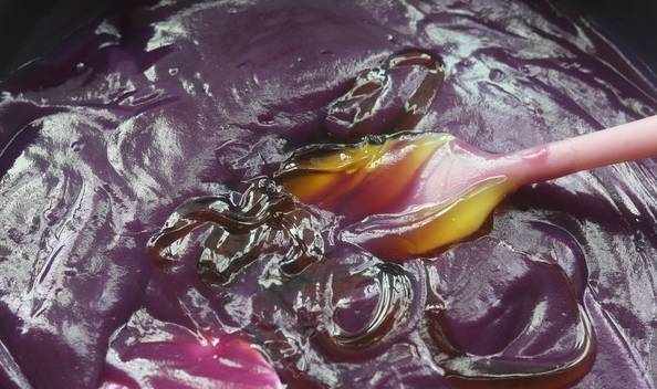 5.打好的紫薯泥倒入不粘鍋中,加入麥芽糖