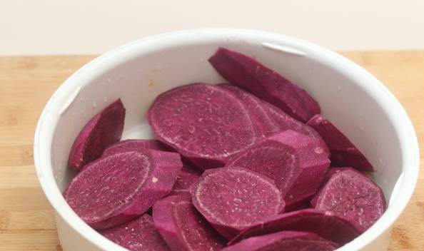 3.蒸熟後的紫薯,稱取300克