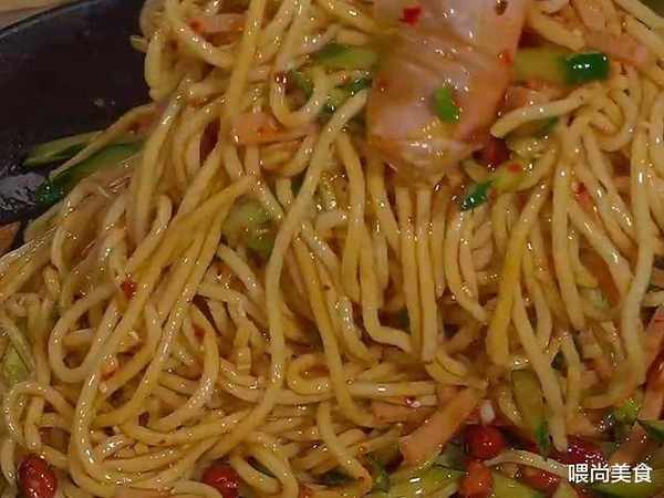 1、鍋中燒水,水時尚入面條,煮熟後撈出,過一下涼水,控幹水分後放入碗中,再放入黃瓜絲、火腿絲、蒜末、蔥花、辣椒面、白芝麻,澆上熱油,激發出香味。
