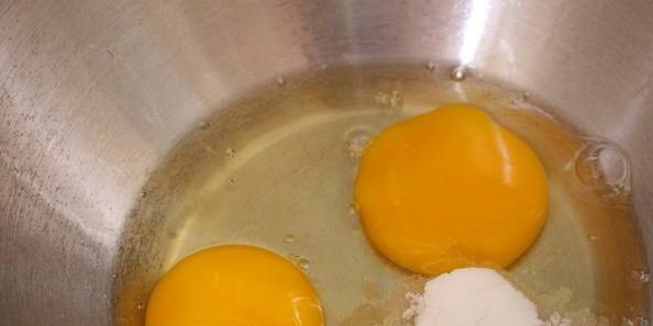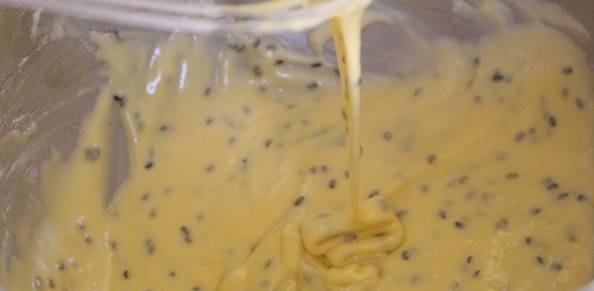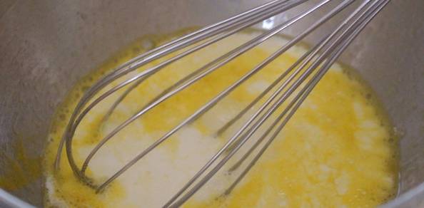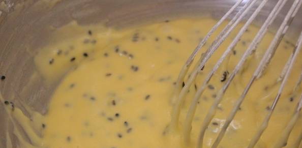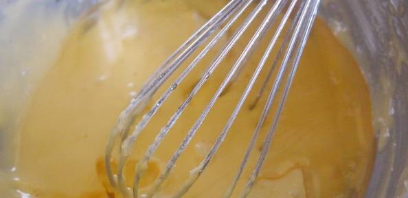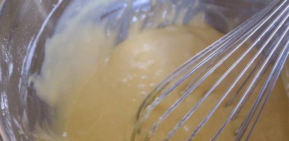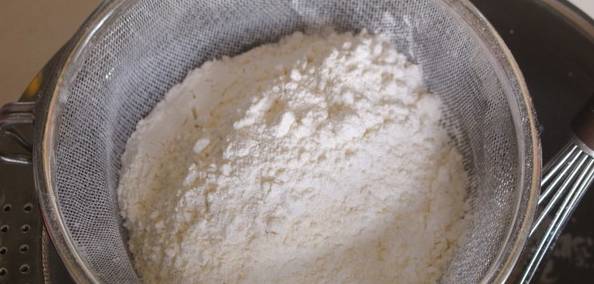 4.將低筋面粉、玉米淀粉、泡打粉過篩入蛋液中