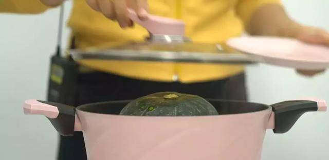 將南瓜放入蒸鍋中,將南瓜蒸熟