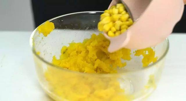 南瓜蒸熟後,取出,去皮,將去皮的南瓜放入碗中,壓制成泥,將玉米油放入南瓜泥中備用,玉米油與南瓜泥攪拌均勻