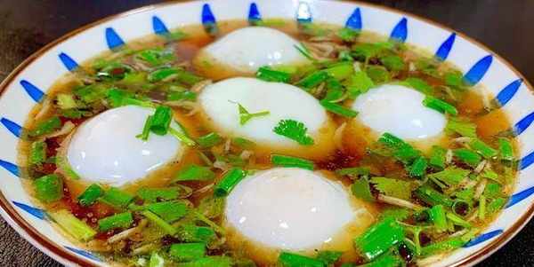 2、小碗裡加入一勺生抽,半勺的香醋,再來幾滴香油,食鹽,蔥花,蝦皮,再倒入開水沖一下,把煮好的荷包蛋放入碗。一道簡單又好吃的水煮荷包蛋就做好瞭。