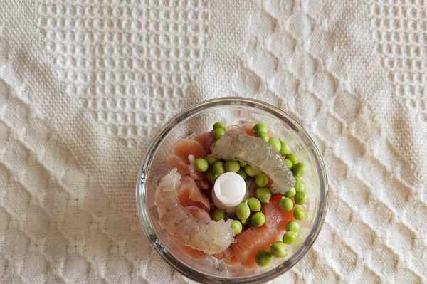 4、攪打成泥,倒入碗裡。豌豆顆粒沒有打得那麼細,適合有咀嚼能力的小朋友。