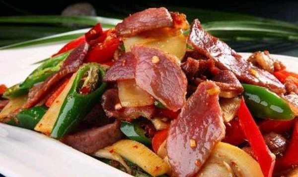 1.臘肉切片,入沸水中焯至肥肉呈半透明狀,