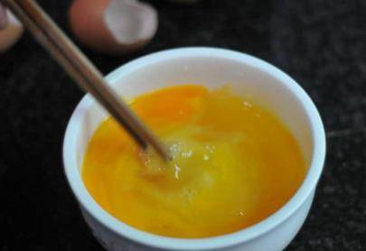 第四步:把雞蛋磕入碗裡,撒上適量的食用鹽,打散雞蛋液。