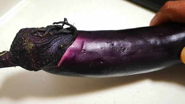 所謂的“瞧一眼”是指瞧哪?老菜農所說的看“這”又是指“什麼”?眾所周知,茄子是由茄身、花萼和茄子把所組成,而花萼與果實的交界處,我們能看到一條白色略帶綠色的帶狀環,這裡我們叫做茄子的“眼睛”,細心地人會發現,茄子的“眼睛”有大小之分,這就是我們所看的關鍵點:眼睛越大說明這個茄子營養比較充分,而且是屬於青壯年期,因此比較鮮嫩,口感會比較好;隨著時間的推移,茄子就長老瞭,這時的茄子眼睛也開始變小,營養也會不足,口感也會變差。