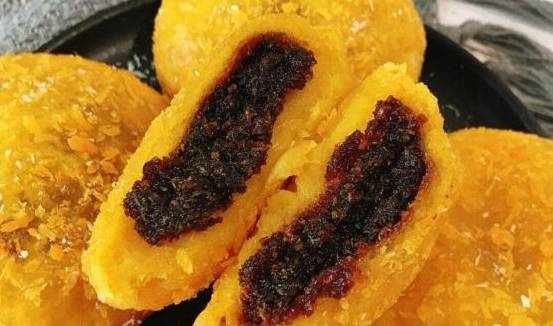 南瓜150克、糯米粉145克、紅糖35克、椰蓉20克、面包糠適量、食用油
