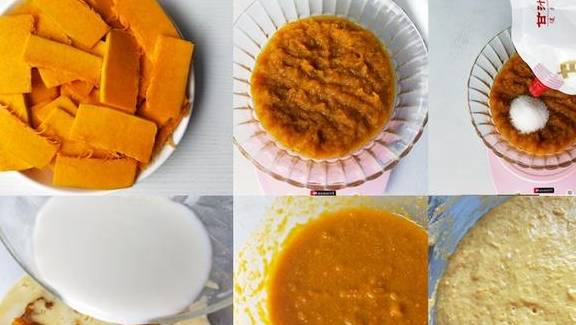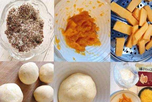 1、南瓜去皮洗凈切片,蒸熟後搗成泥。