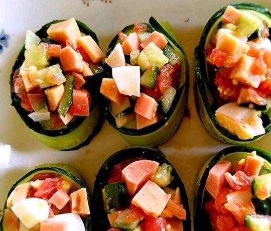 黃瓜2條、雞蛋1個、米飯1碗、火腿腸1條、西紅柿1個