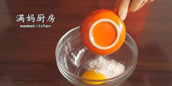 1,打一顆雞蛋,蛋黃和蛋清分離,蛋黃中加入低筋面粉