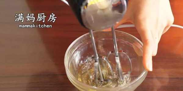 3,蛋白中加入幾滴檸檬汁,用電動打蛋器打發(給大一些的寶寶吃的話可以適當加一點糖,味道會更好)