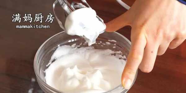 4,打發蛋白至提起有小尖尖,且蛋白紋路不易消失的狀態