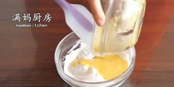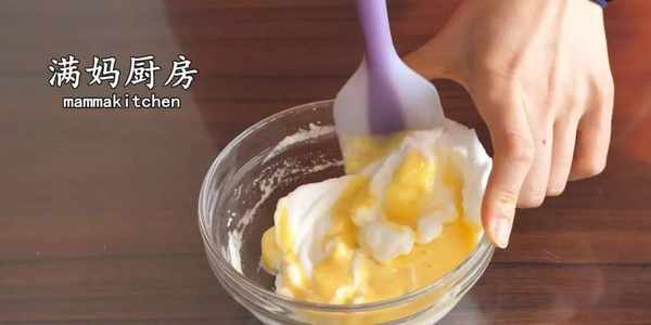 5,把蛋黃糊倒入打發好的蛋白中