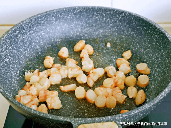 2、蝦仁洗幹凈,切成小塊(小蝦仁可以不切),加入適量食鹽、生抽、料酒、胡椒粉、食用油拌勻,醃制10分鐘。蒜瓣去皮切末。