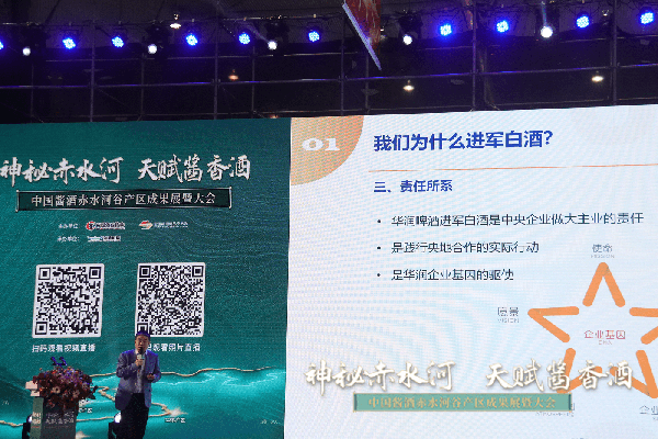 4月12日上午,華潤啤酒(控股)有限公司首席財務官、華潤酒業總經理魏強在“中國醬酒赤水河谷產區成果展暨大會”上,深入細致分享瞭“華潤酒業為什麼做醬酒、為什麼選擇金沙”的緣由。