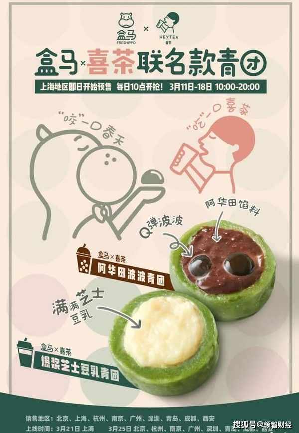 喜茶在產品口味上持續創新,與盒馬共同推出阿華田波波青團,與奧利奧聯名推出奧利奧咖啡波波冰。