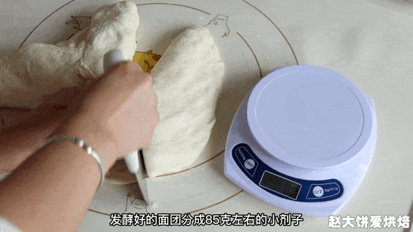 分成85克左右的小劑子,可以做九份,我會用到16厘米長的烤腸(如果用小烤腸,就分成35-45左右的小劑子)