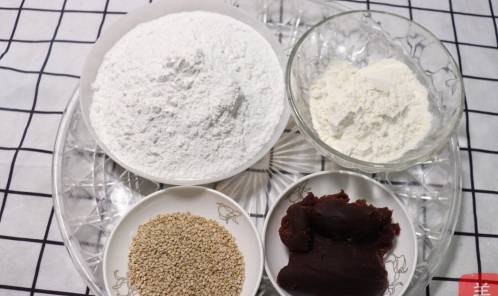 【制作食材】糯米粉,白芝麻,豆沙,面粉,食用油