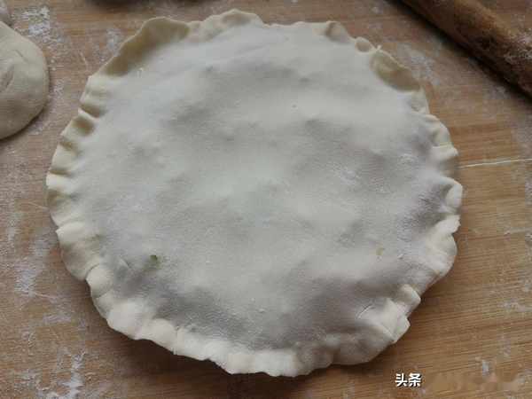 第七步:上面再鋪上一個面皮,把周圍都捏緊。也可以用叉子壓邊,也是很省勁的。