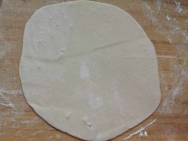 第四步:醒好的面團拿出揉勻,就成小面劑子,按扁搟成薄薄的面皮。和餃子皮的厚度差不多,做韭菜盒子皮薄瞭好吃。