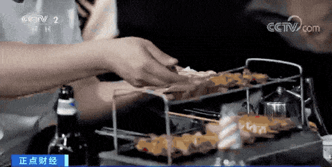 但因為急著要趕高鐵,於是燒烤店的老板娘親自過來幫他烤(淄博燒烤一般形式為半自助,耗時較長):