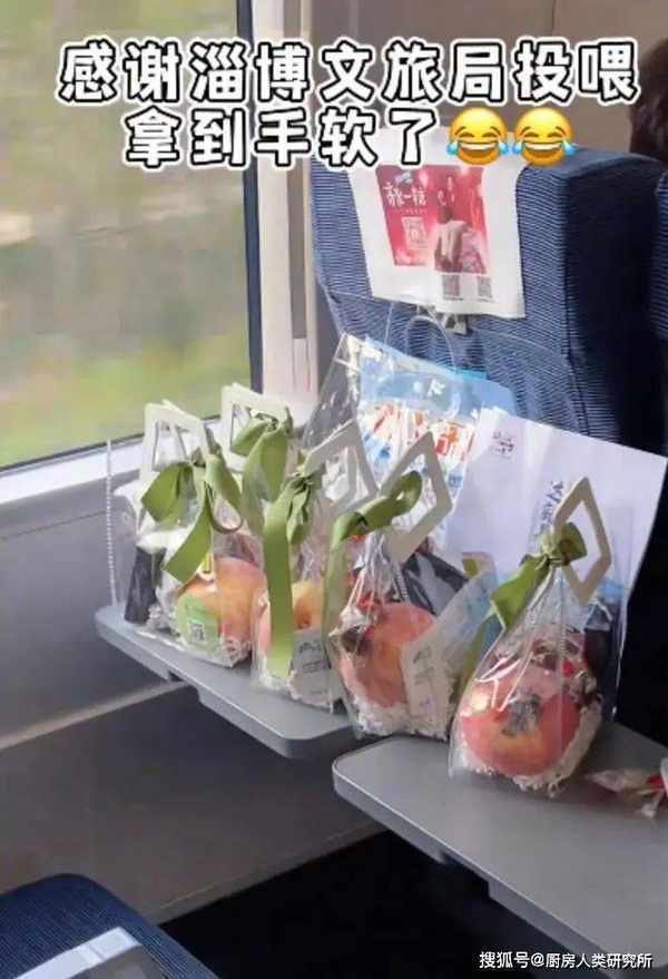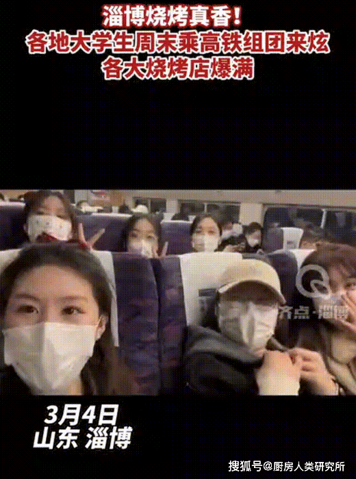 為瞭讓遊客從上高鐵就能感受淄博燒烤的氛圍,淄博先是弄出瞭燒烤高鐵專列,直接整個列車都是燒烤主題:
