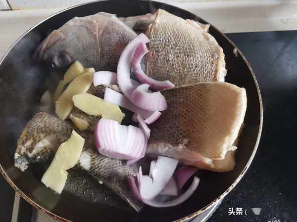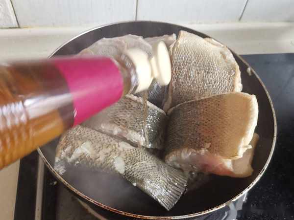 第六步:把煎好的鱸魚倒入大一些的鍋裏,加入醬油,醋,然後加入適量的清水,大火燒開,再加入紅糖,少許鹽。