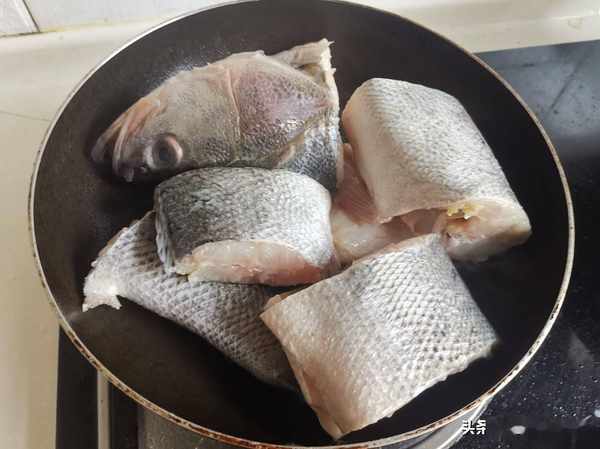 第二步:先把海鱸魚切成大塊,不然海鱸魚太大了,鍋不大不好煮,所以要切成塊。如果你的鍋够大,那麼就可以整條放進去煮。