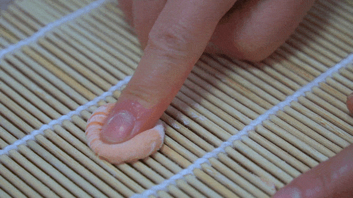1、準備一個壽司簾子,撒點幹面粉,然後取一下小面塊兒。