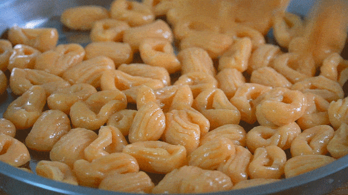 2、煮熟的小面卷要過一下涼水,然後加食用油拌一下,這樣保存起來才不會全部粘連在一起。